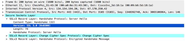 Detects the SSL version listed in the SSL server hello handshake.