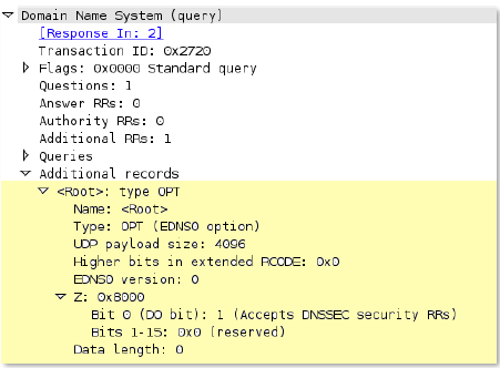 Additional records section of a DNS response.