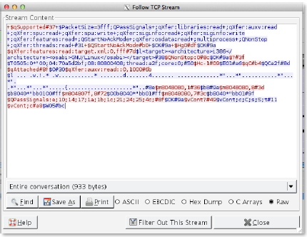 After capturing the GDB network data, I followed the TCP stream to view the data. In this instance, everything in blue is what this context provides
