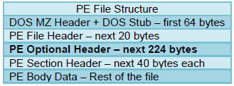 The optional header of a PE file is typically 224 bytes long and starts at the 86th byte of the PE file.
