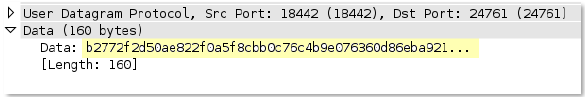 Full UDP payload for unknown UDP traffic originating from the “server”, which is opposite the “client”.