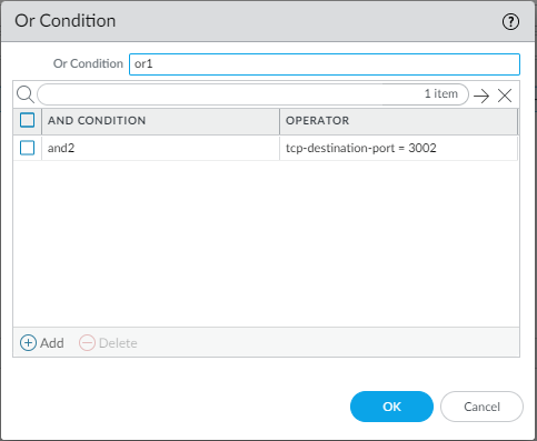 - Specify a matching Or Condition. When finished, select Add to configure an And Condition and the associated values in a new window.