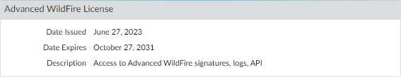 If your current WildFire license has expired and you are installing an Advanced WildFire license, you must first remove the WildFire license from the NGFW before installing the Advanced WildFire license.Update or create a new WildFire Analysis Security profile to enable Advanced WildFire Inline Cloud Analysis.- Select an existing WildFire Analysis Profile or Add a new one (ObjectsSecurity ProfilesWildFire Analysis).