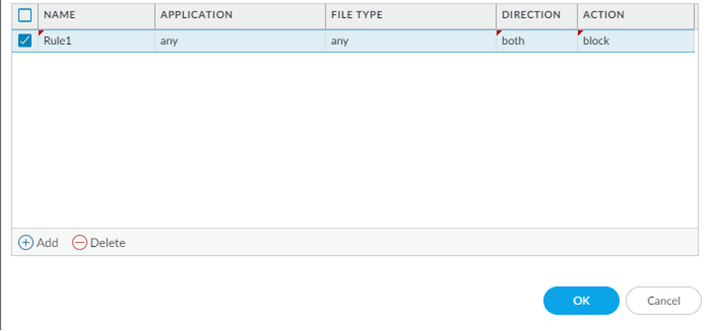 - Specify a rule defining an action to take when Advanced WildFire Inline Cloud Analysis detects advanced malware.