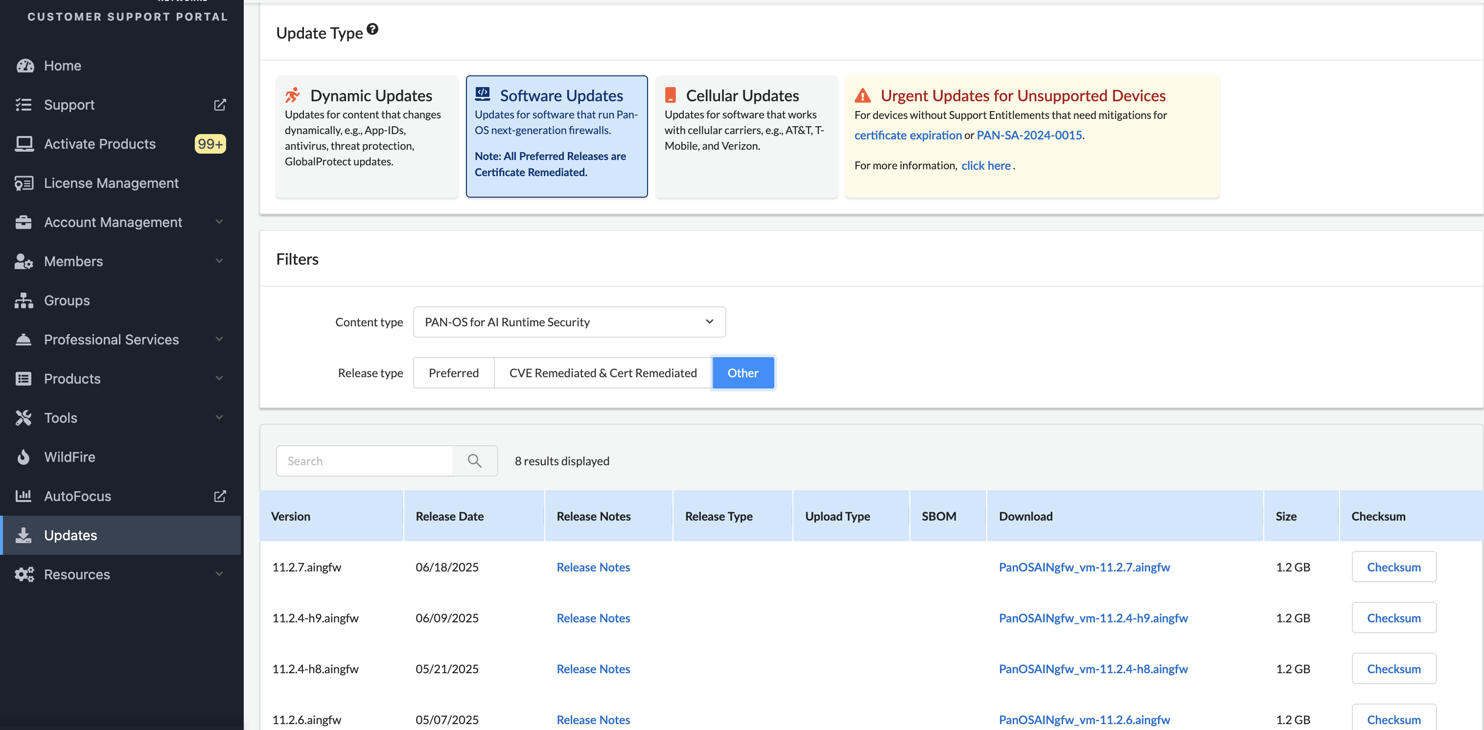 - Log in to the Palo Alto Networks Customer Support Portal.