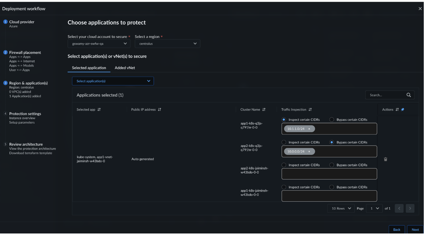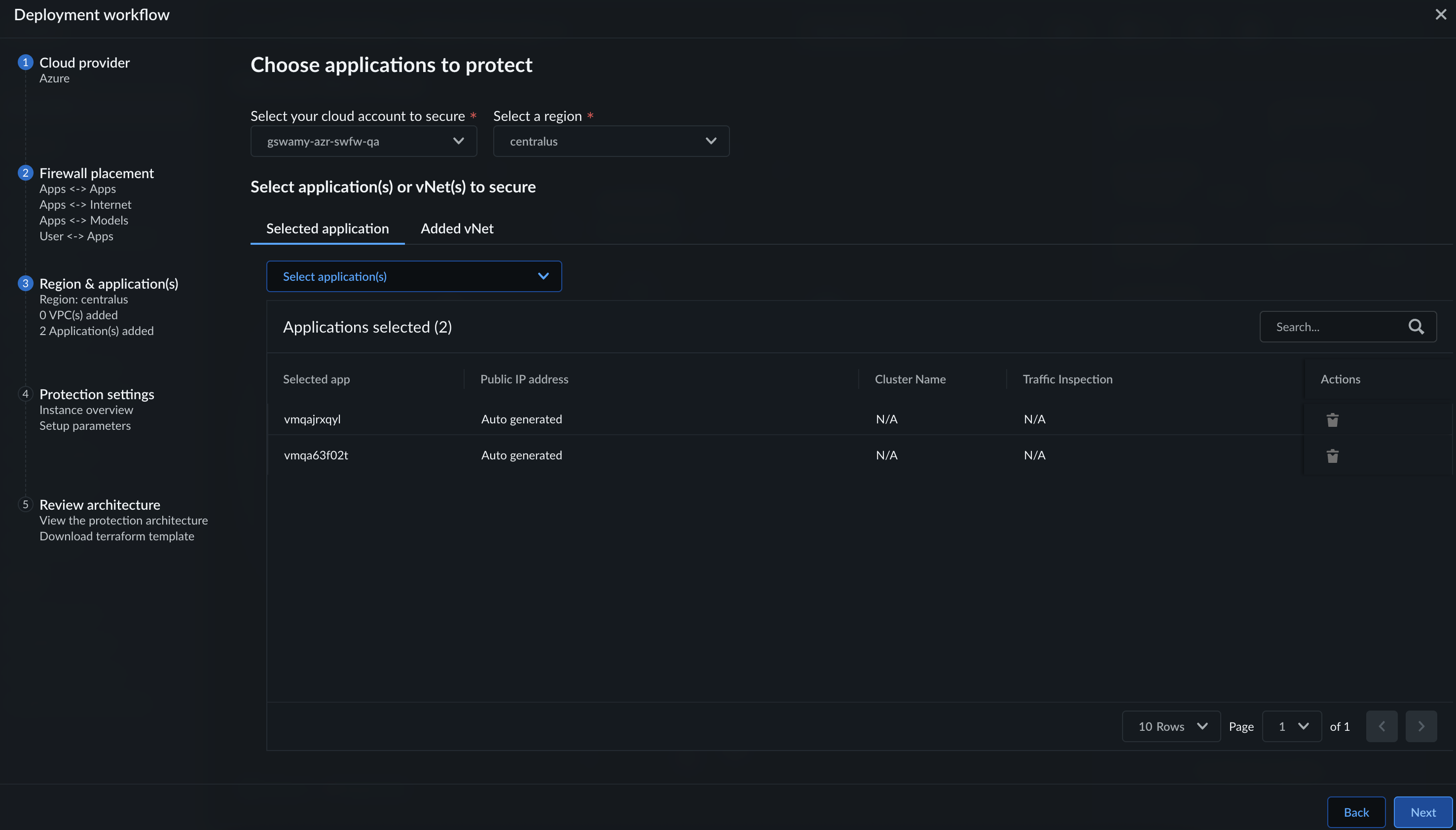 Select the Added vNet tab if you want to secure a vNet. Enter the