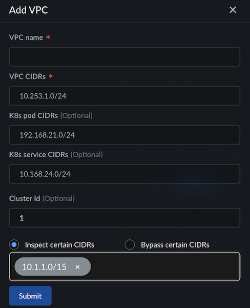 • Bypass certain CIDRs: Exclude traffic from specified subnet ranges from inspection.