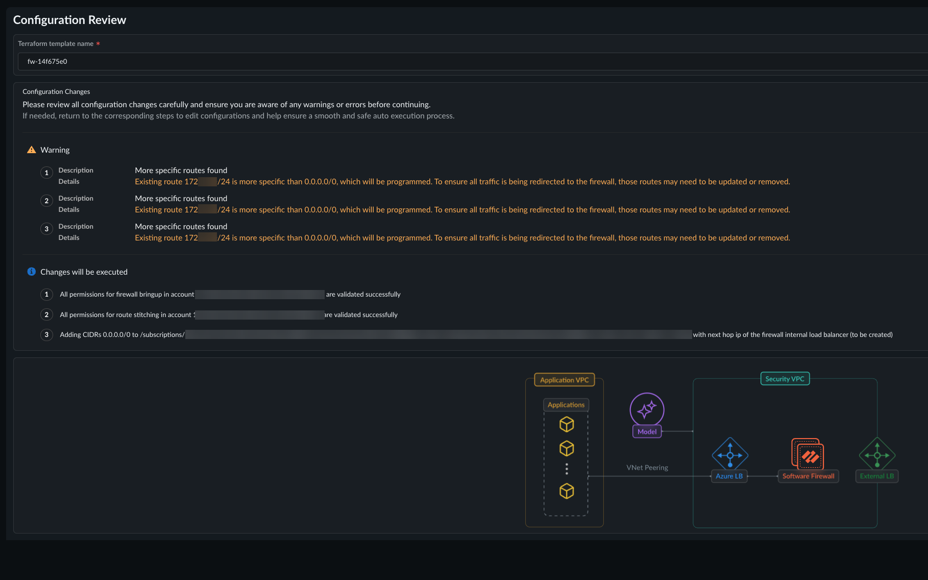 - Route table configuration—Prisma AIRS automatically modifies existing route tables and creates new routes to redirect traffic to firewall instances.