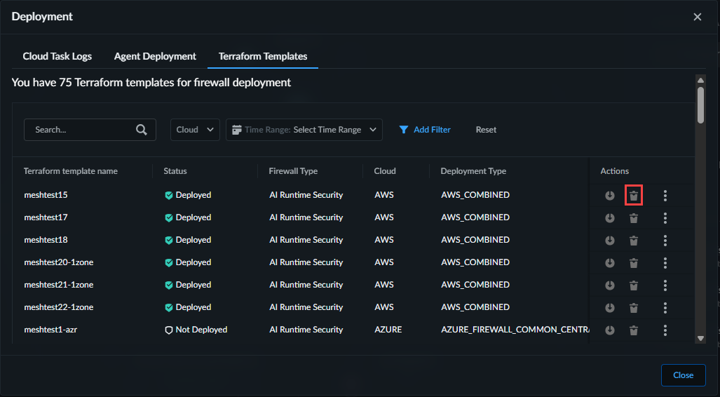 icon to decommission the Terraform template and cloud resources deployed by Prisma AIRS.