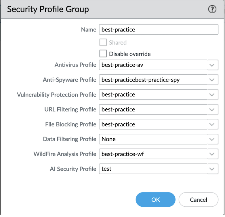 2. Create Security Profile Groups and attach the AI Security profile to each profile group.