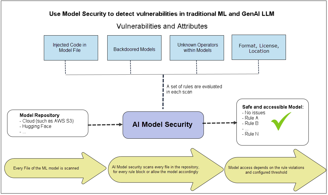 • Insecure Formats: Ensuring that your models use formats that help prevent threats.