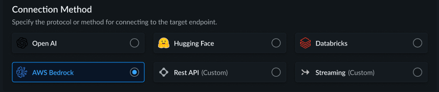 - After specifying Target Details, set the Connection Method to AWS Bedrock.