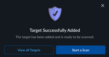 Select Add Target.Once the target is created you can start a scan, or view previously created targets: