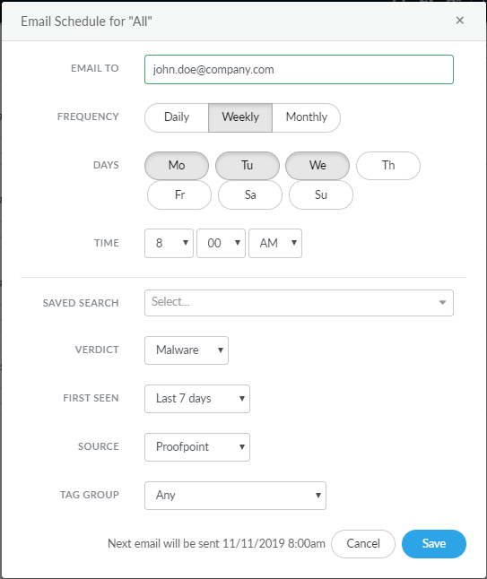 it is sent. You can also filter the report contents based on the Verdict, the Time