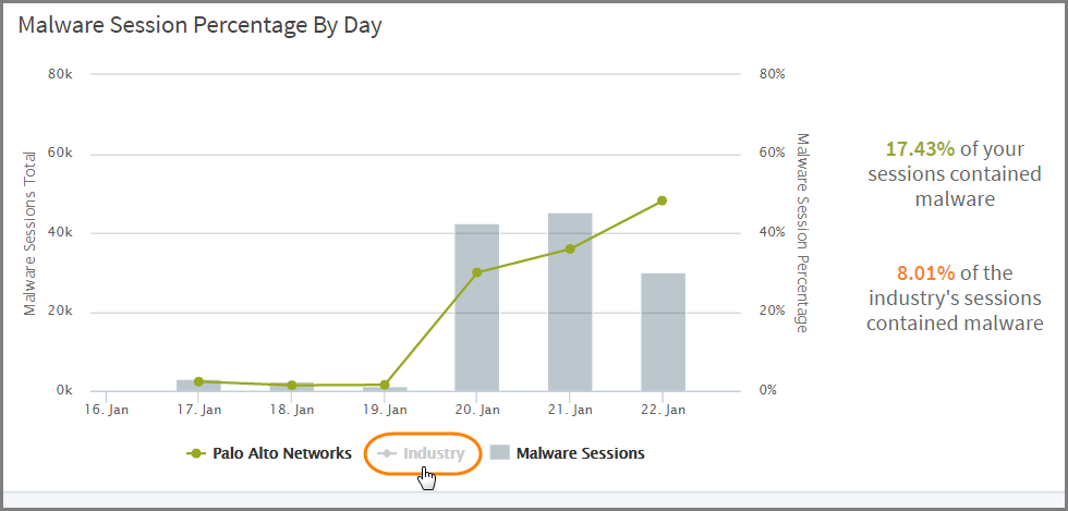 Your Malware Session Percentage By Day is compared with the figures for your industry.