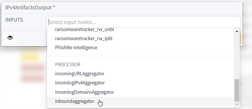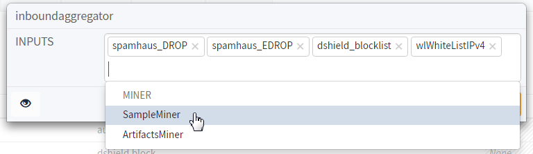 - Edit the Inputs for the node.To establish the connection between miner, processor, and output nodes, you must: