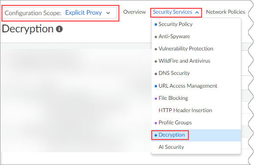 Create a new decryption policy. Navigate back to Security ServicesDecryption, and in Decryption Policies , click