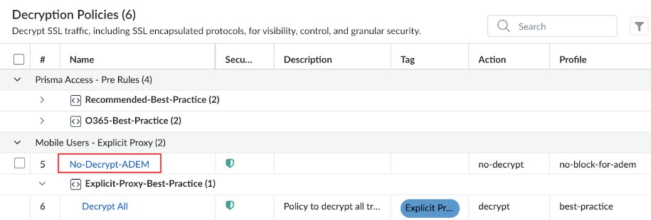 No-Decrypt-ADEM policy above the default