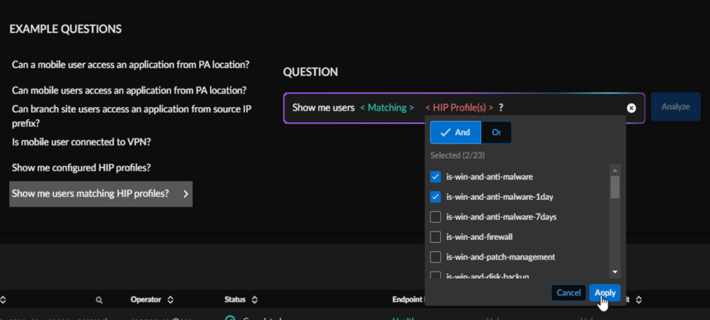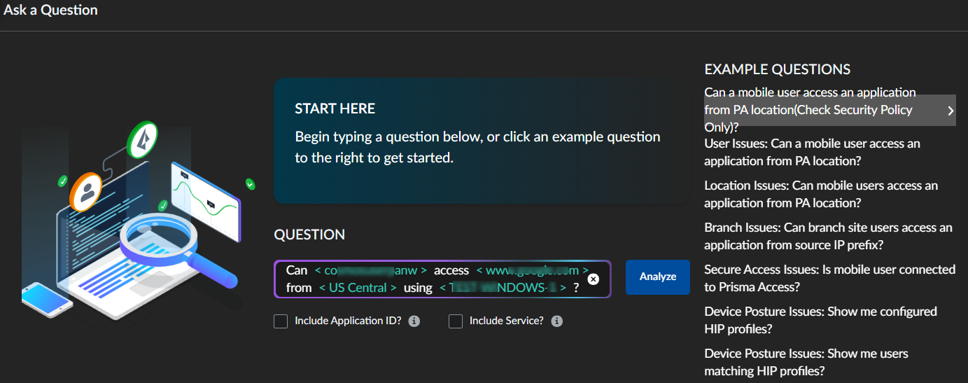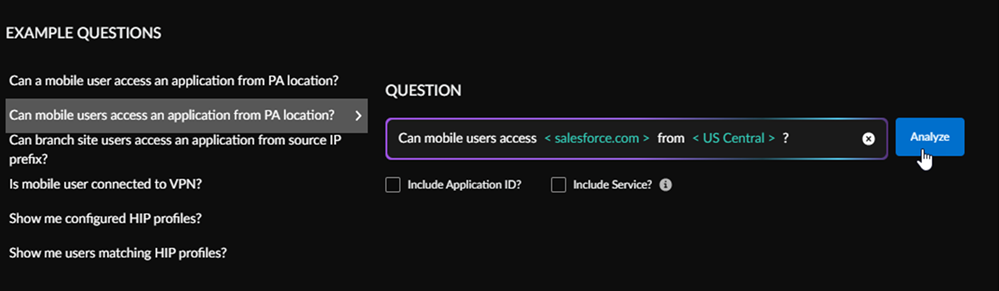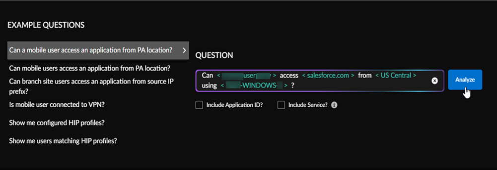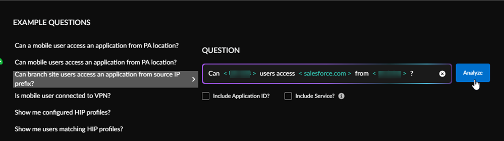 Analyzer page (). Variables are enclosed in wickets and can be a field name you