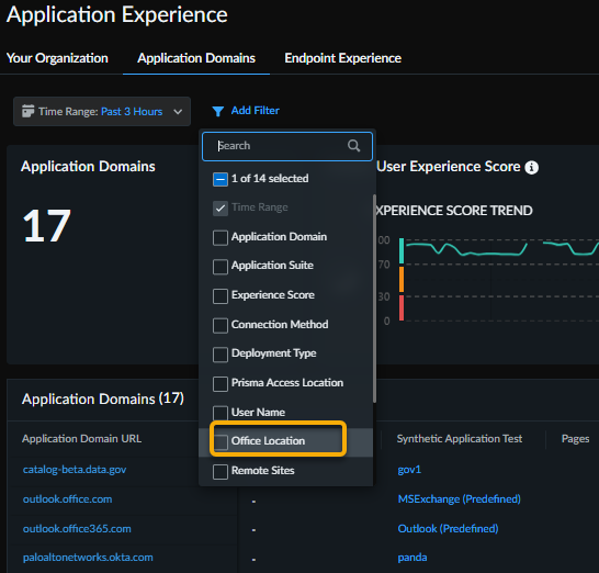 Monitor Application Experience by Office Location