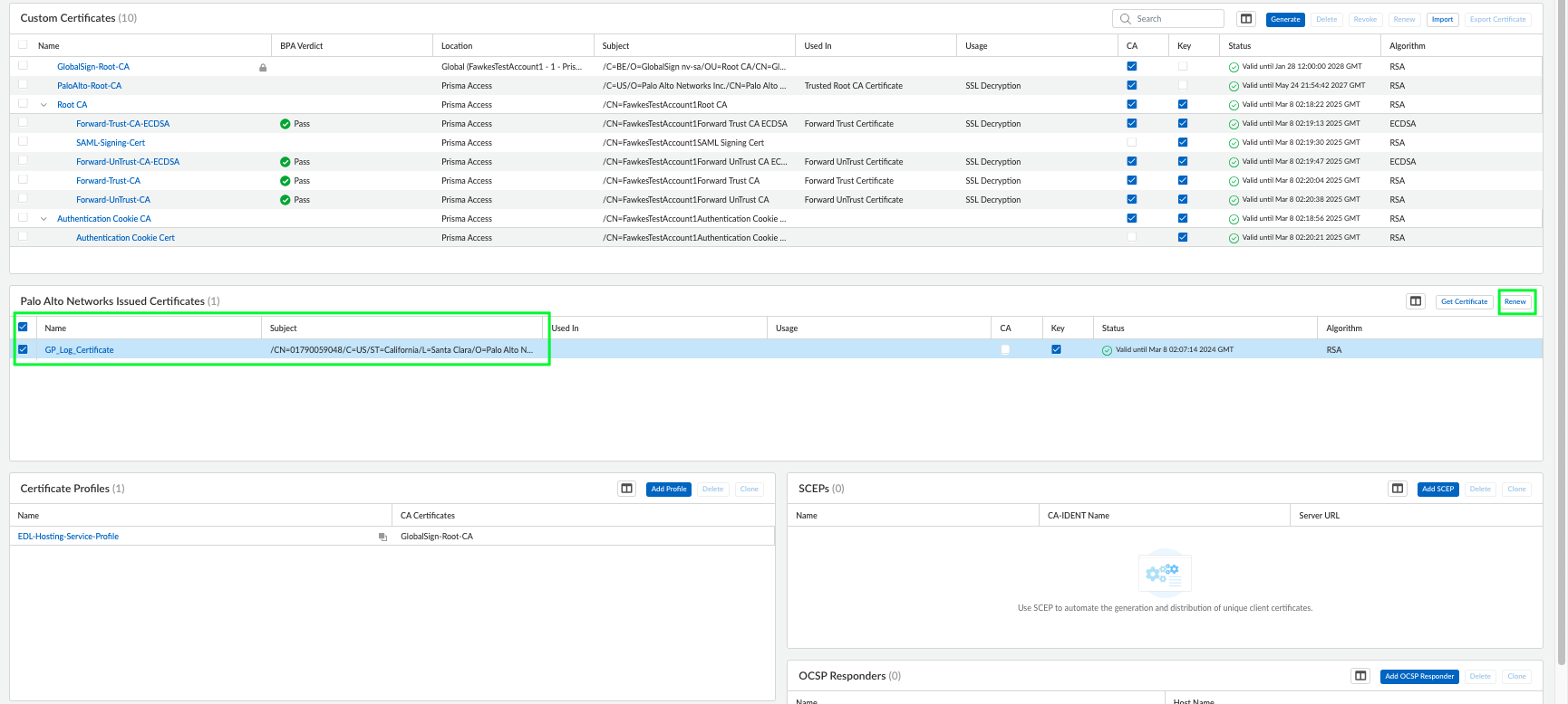 Certificate for GlobalProtect App Log Collection and Autonomous DEM to renew the certificate.