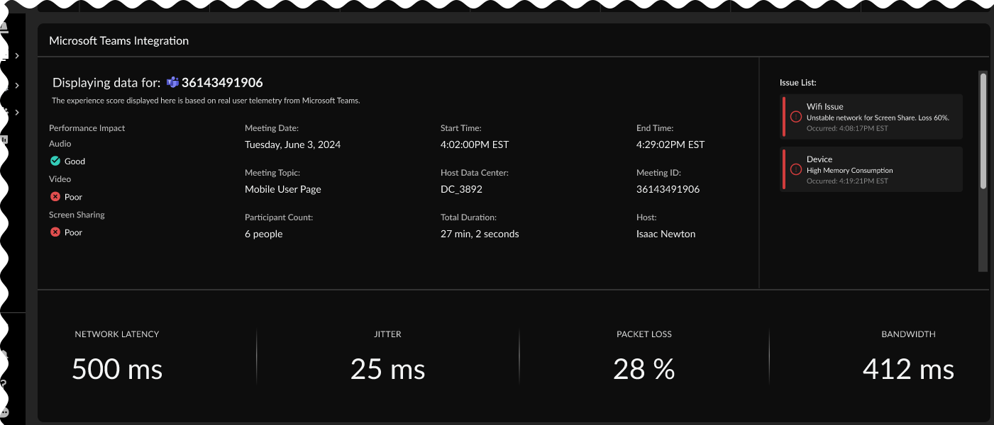Overall Microsoft Teams Performance Impact, such as the