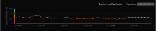 The application experience score for the app compared to the experience score across all applications. Use this chart to see whether there is an issue with this specific app's performance or if there is a more global issue affecting other apps as well.