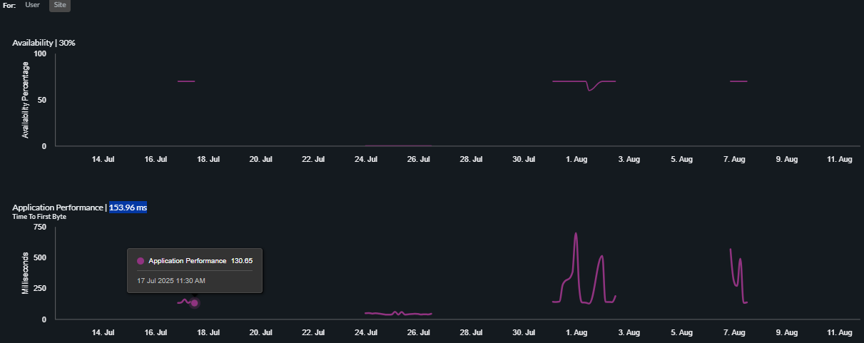App performance(Time to First Byte (TTFB) in milliseconds.