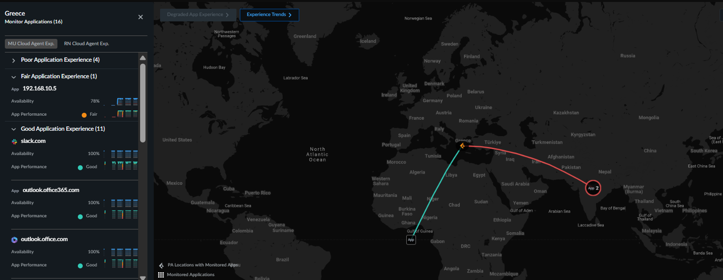 performance of mobile users and remote sites cloud agents in Prisma Access