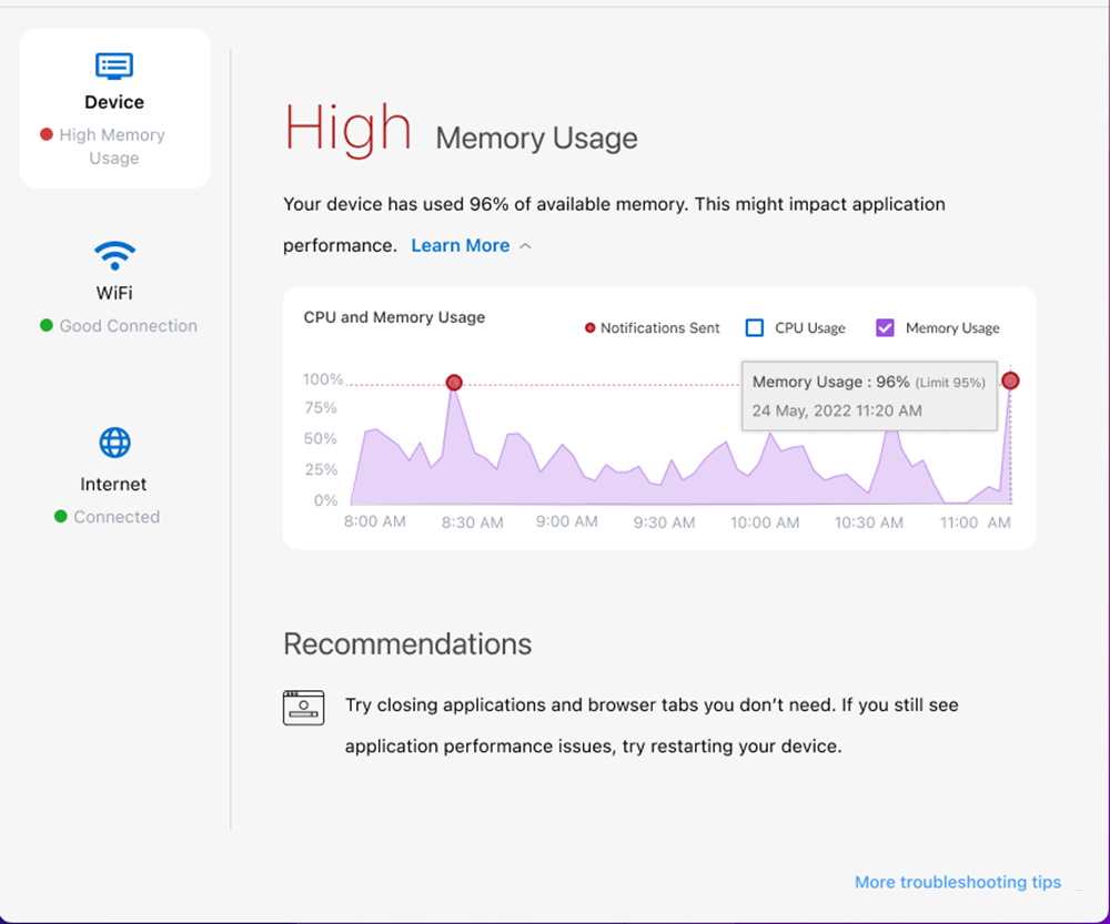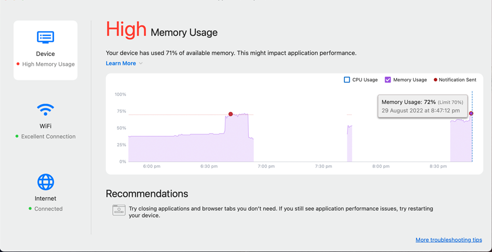running on your device or you have too many browser tabs open. | Close the applications that you