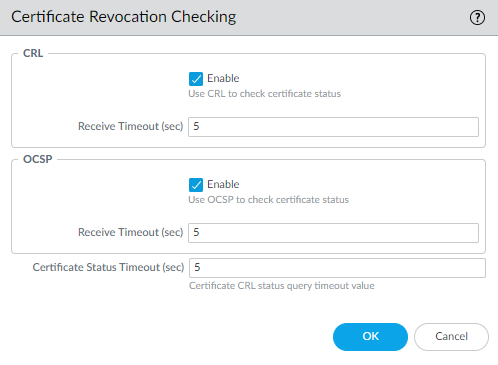 - Configure the firewall to perform CRL/OCSP checks to ensure that certificates presented during decryption are valid.