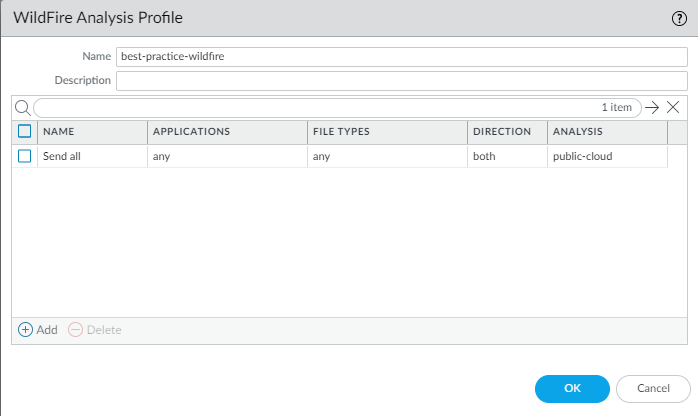 Use these WildFire Analysis security profile settings as a best practice at your internet gateway.
