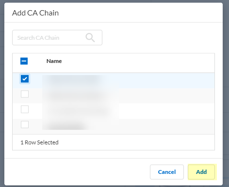 Enter a search term in the Search CA Chain field or select a CA chain you previously configured and Add it to the configuration.The Cloud Identity Engine supports grouping multiple CA chains in a certificate type to authenticate client certificates issued by multiple CA chains.
