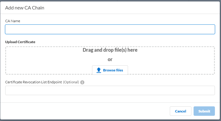 Click Add CA Chain to add one or more CA chains to authenticate users.