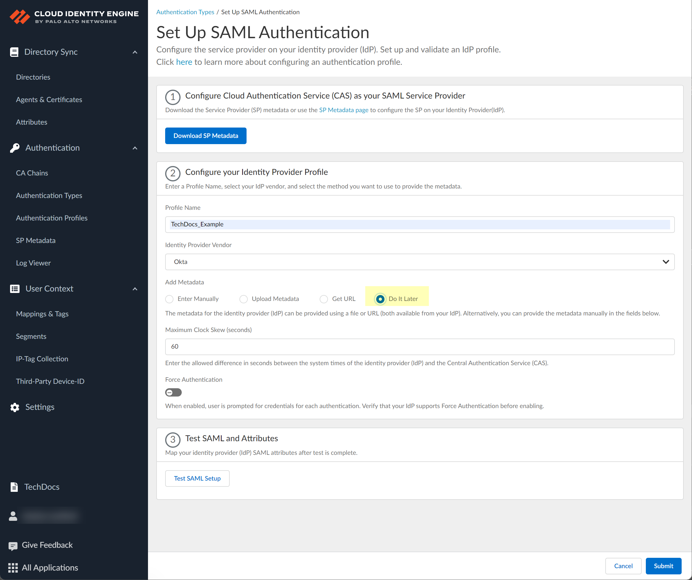 Palo Alto Networks strongly recommends that you integrate Okta in the Cloud Identity Engine as a