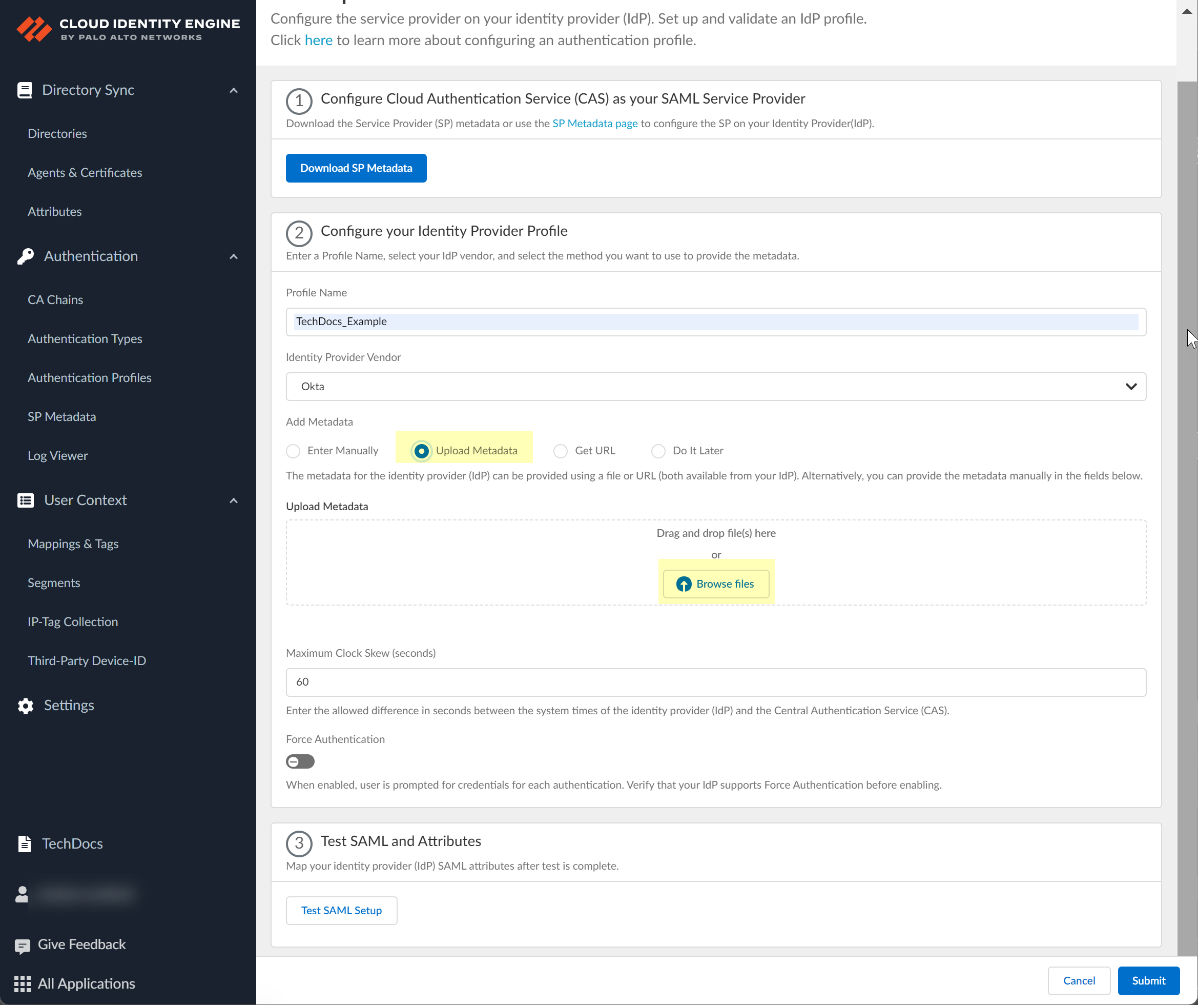 Configure the Okta IDP profile.