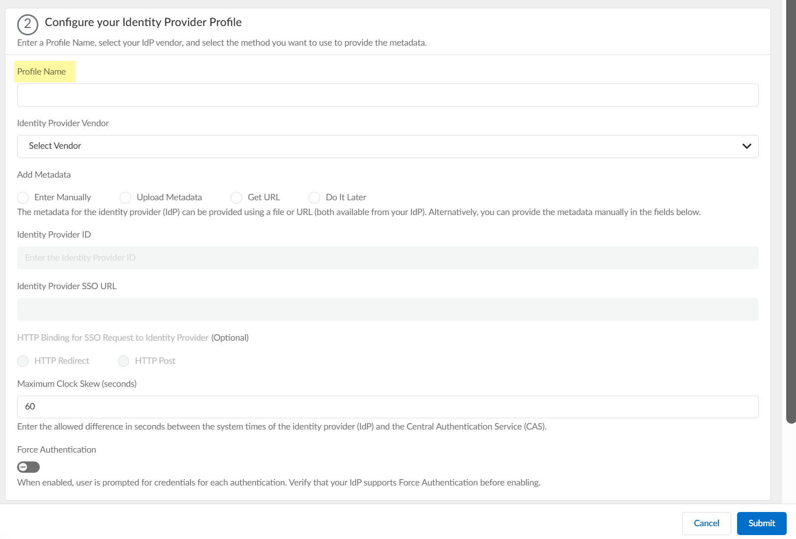 for authentication and Submit the IdP profile.