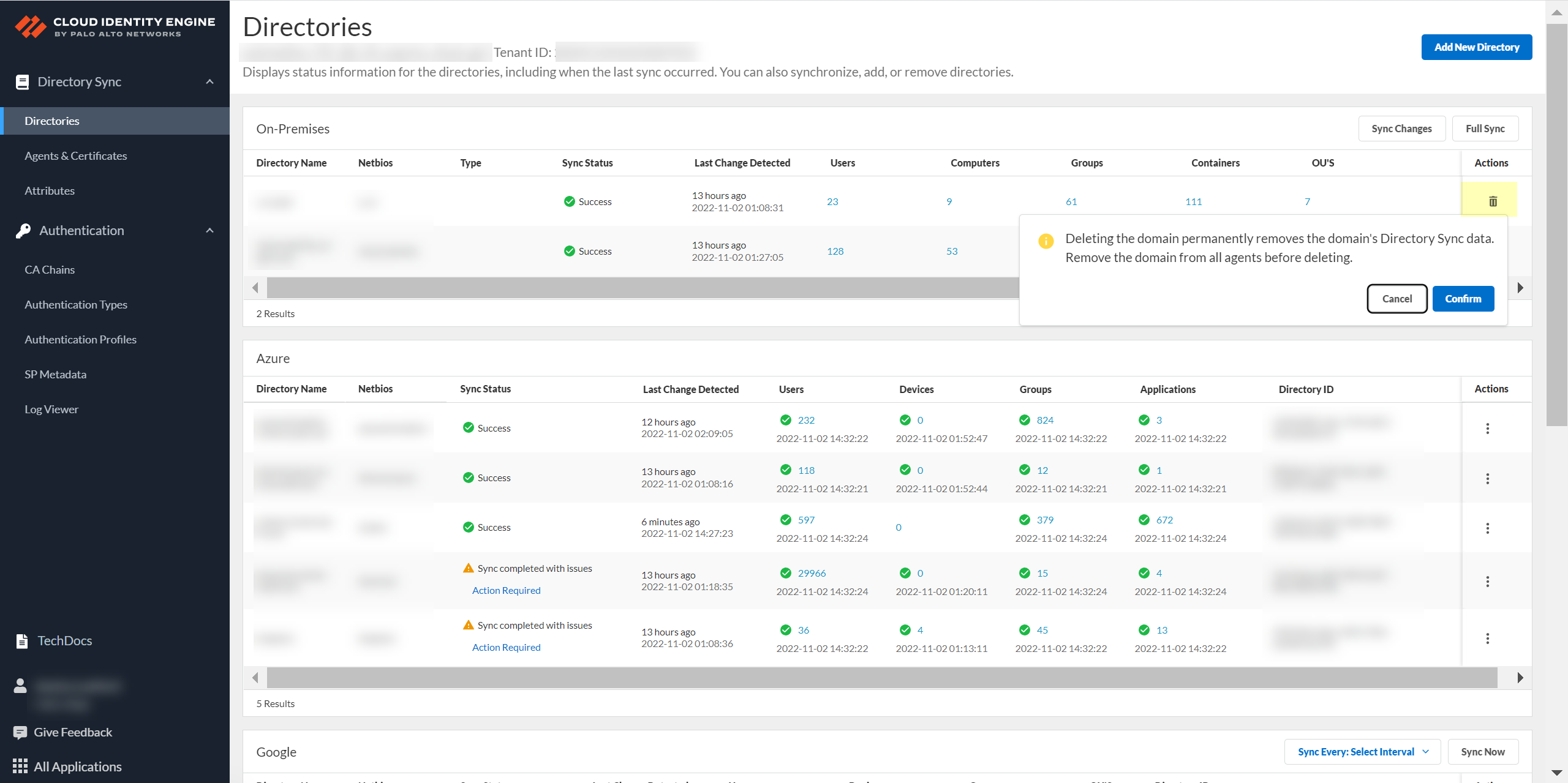 Delete Domains or Directories from Cloud Identity Engine Tenants