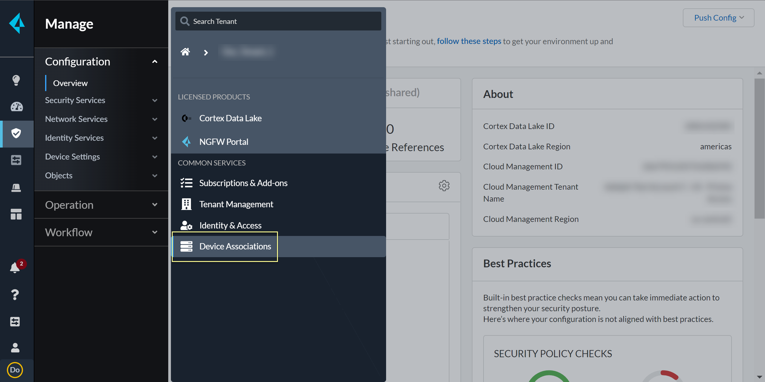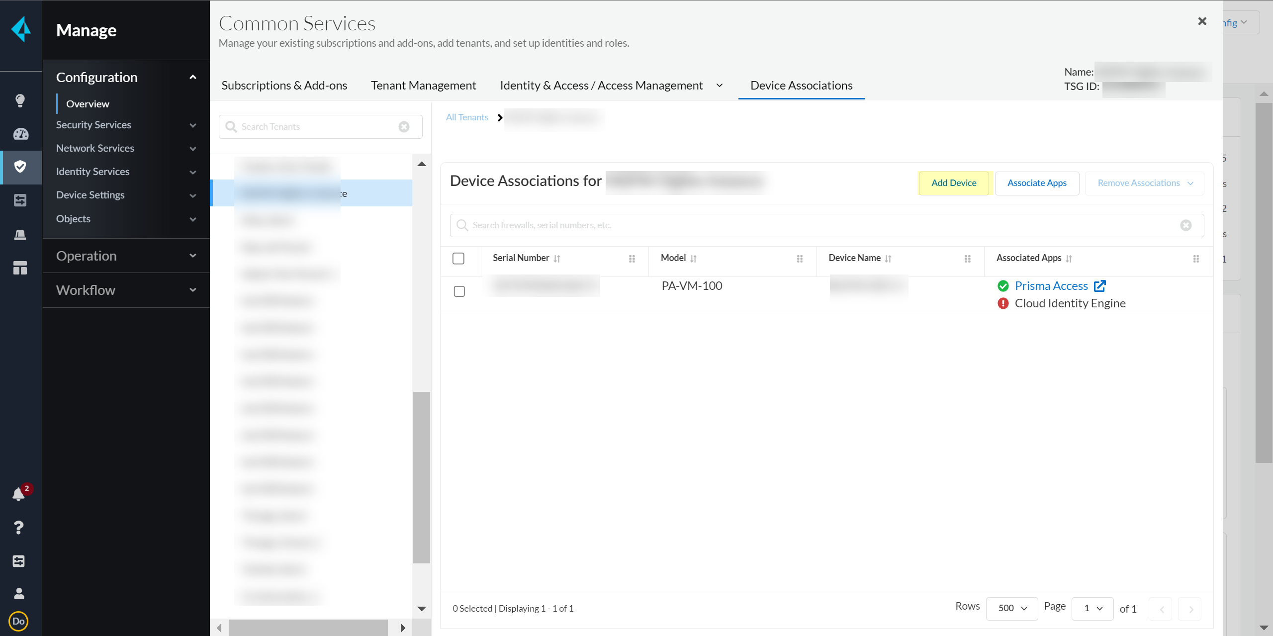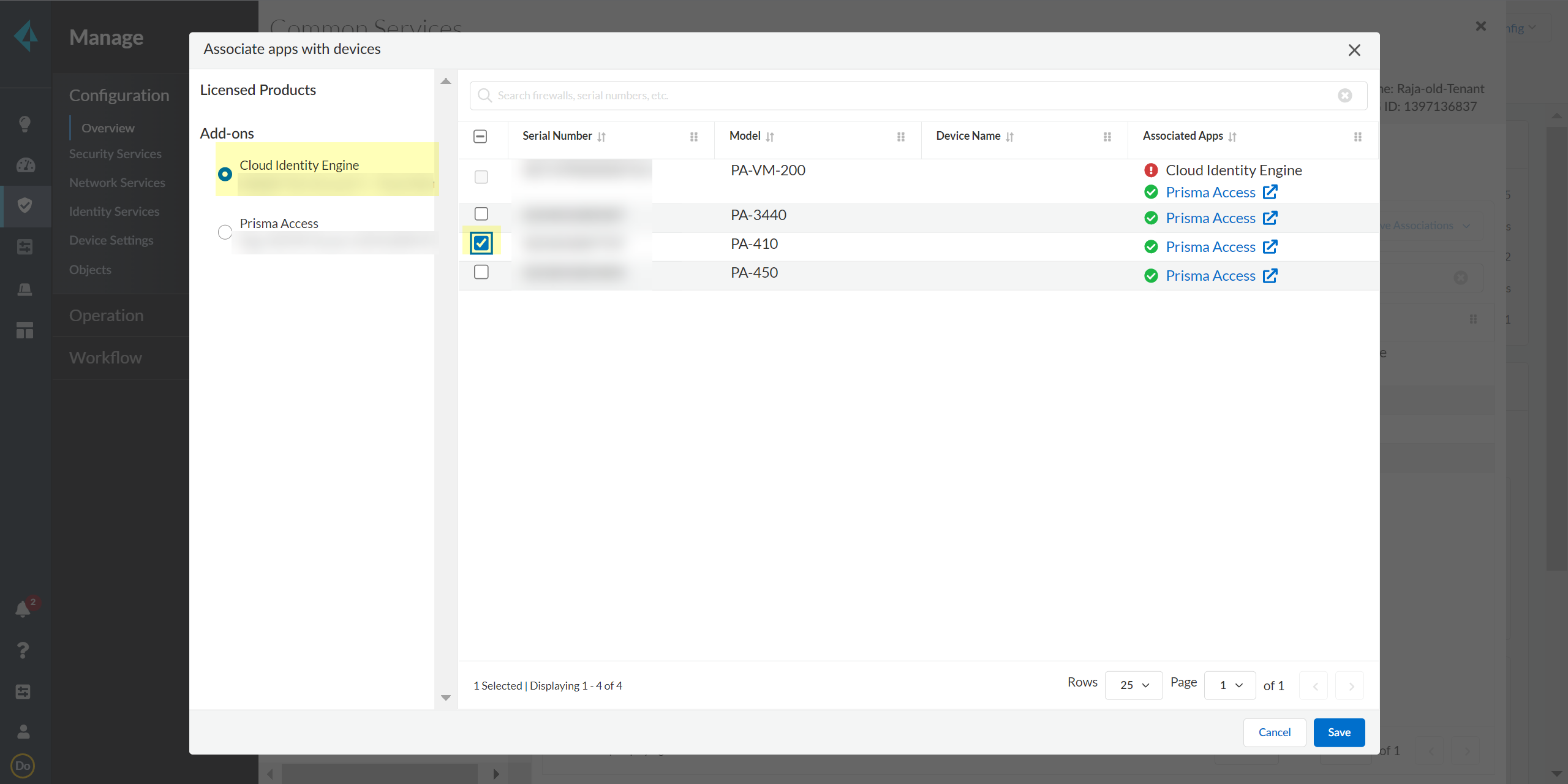 Select your Customer Support Account and enter your firewall serial number.Select the firewall Save your changes.Select Associate Apps.Select the firewall, select the Cloud Identity Engine, and Save your selections.