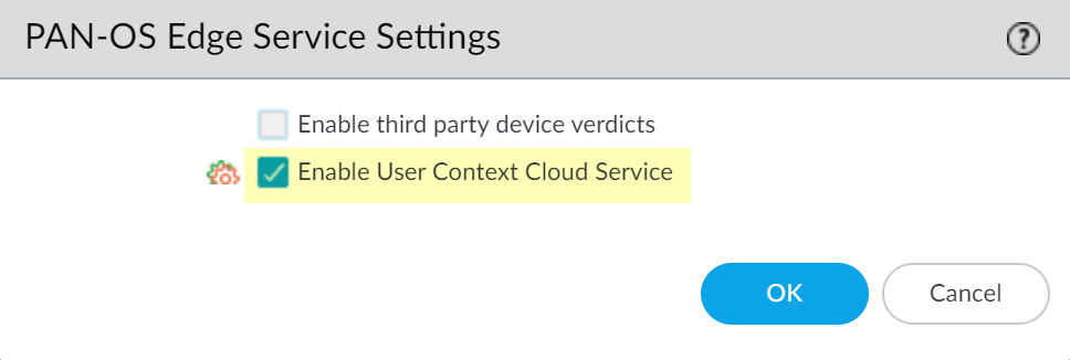 Enable User Context Cloud Service and click OK to confirm the changes.If the firewall traffic uses a management interface, create security policy rules to allow connectivity between the firewall and the User Context Cloud Service.