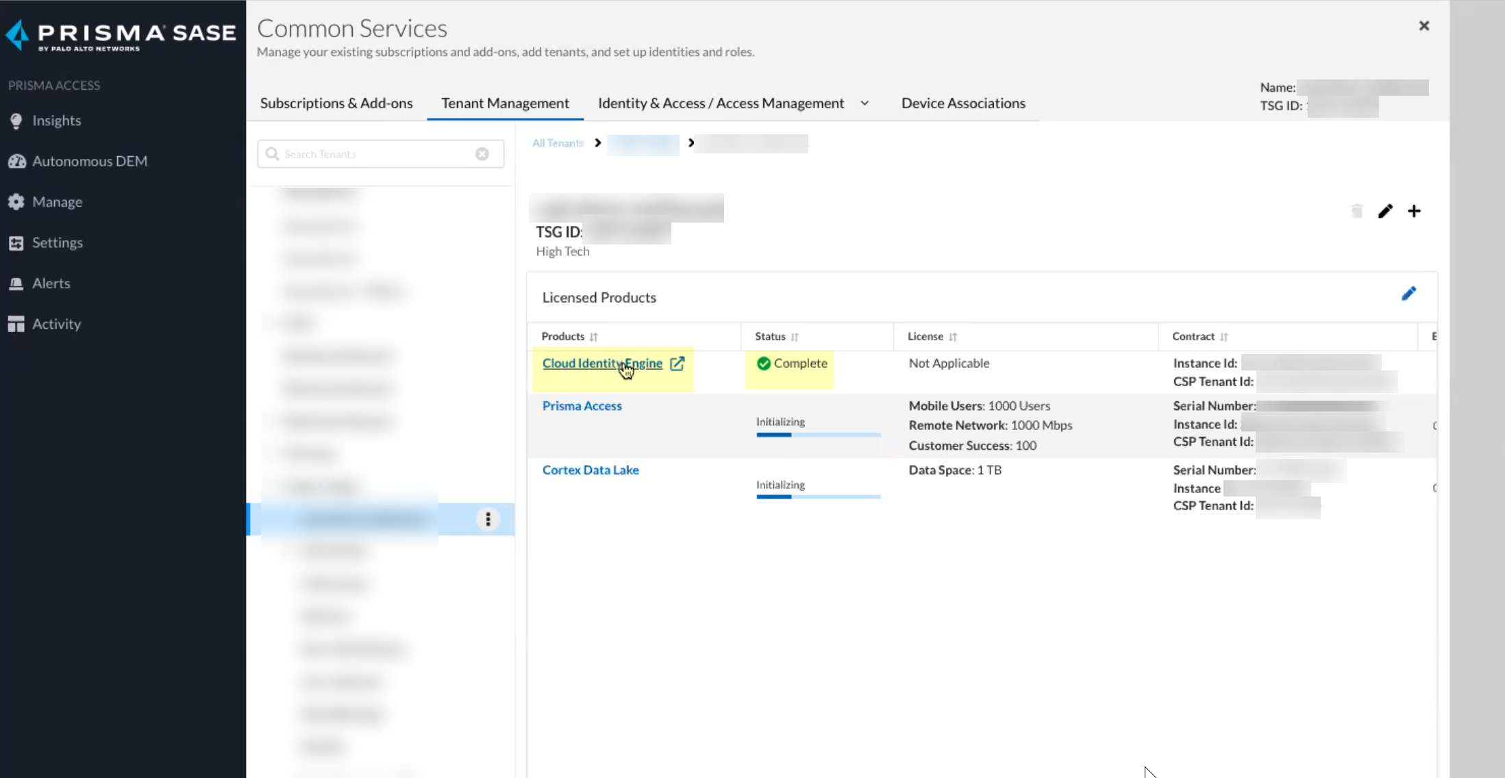 Confirm that the Status for the Cloud Identity Engine is Complete.You can access your Cloud Identity Engine instance by selecting Cloud Identity Engine.
