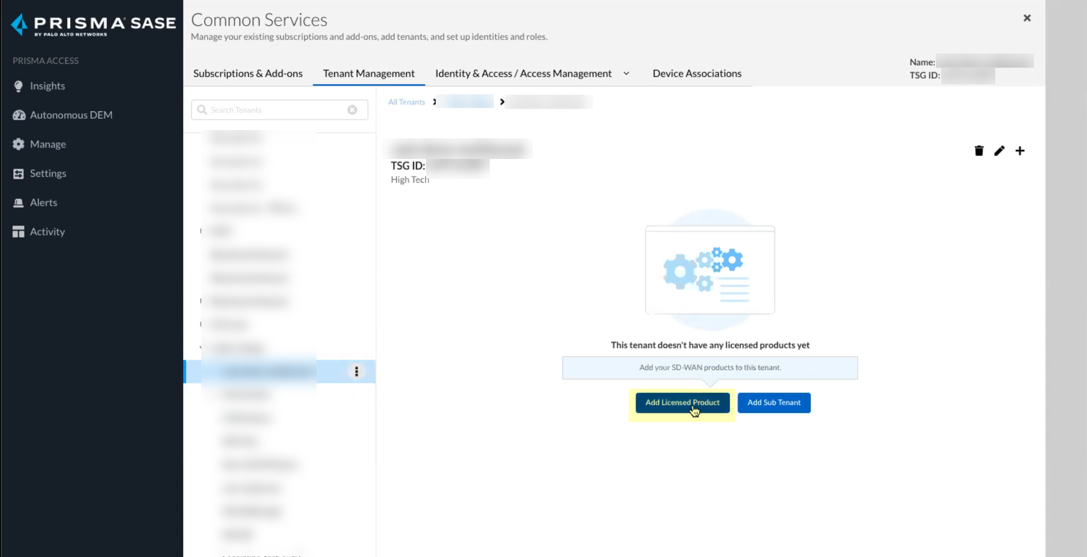 Click Add Licensed Product to continue the onboarding process.