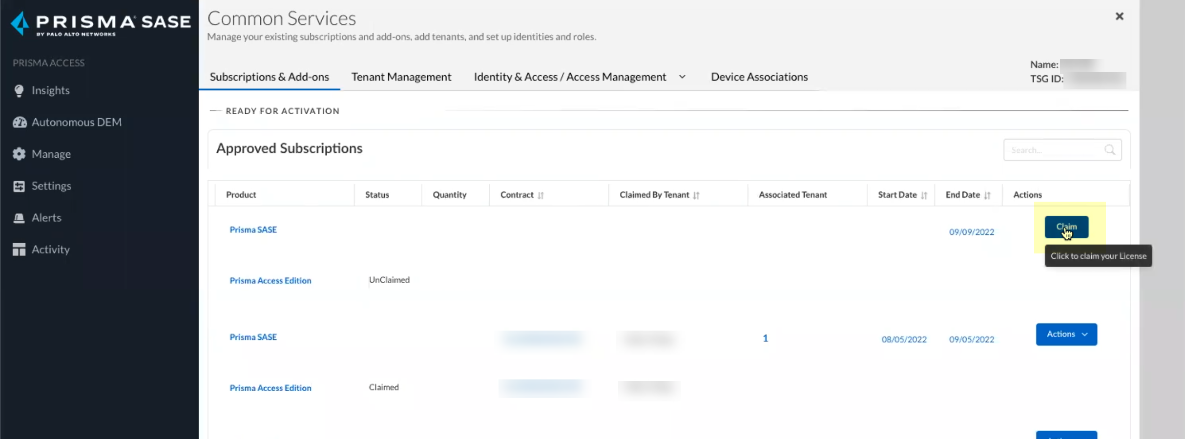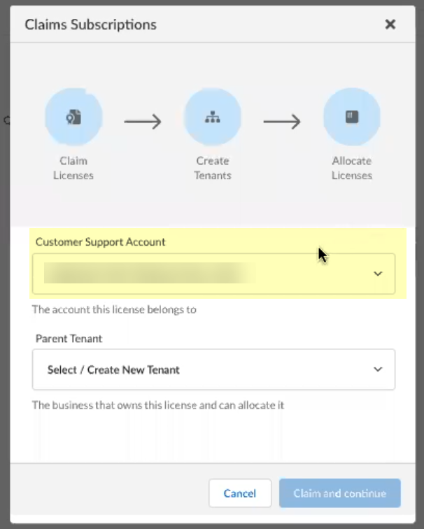 Claim the license for the tenant you want to onboard.