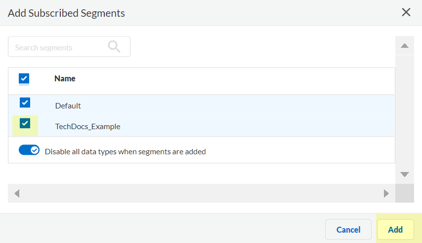 Select the segments that you want to include and Add the segments.