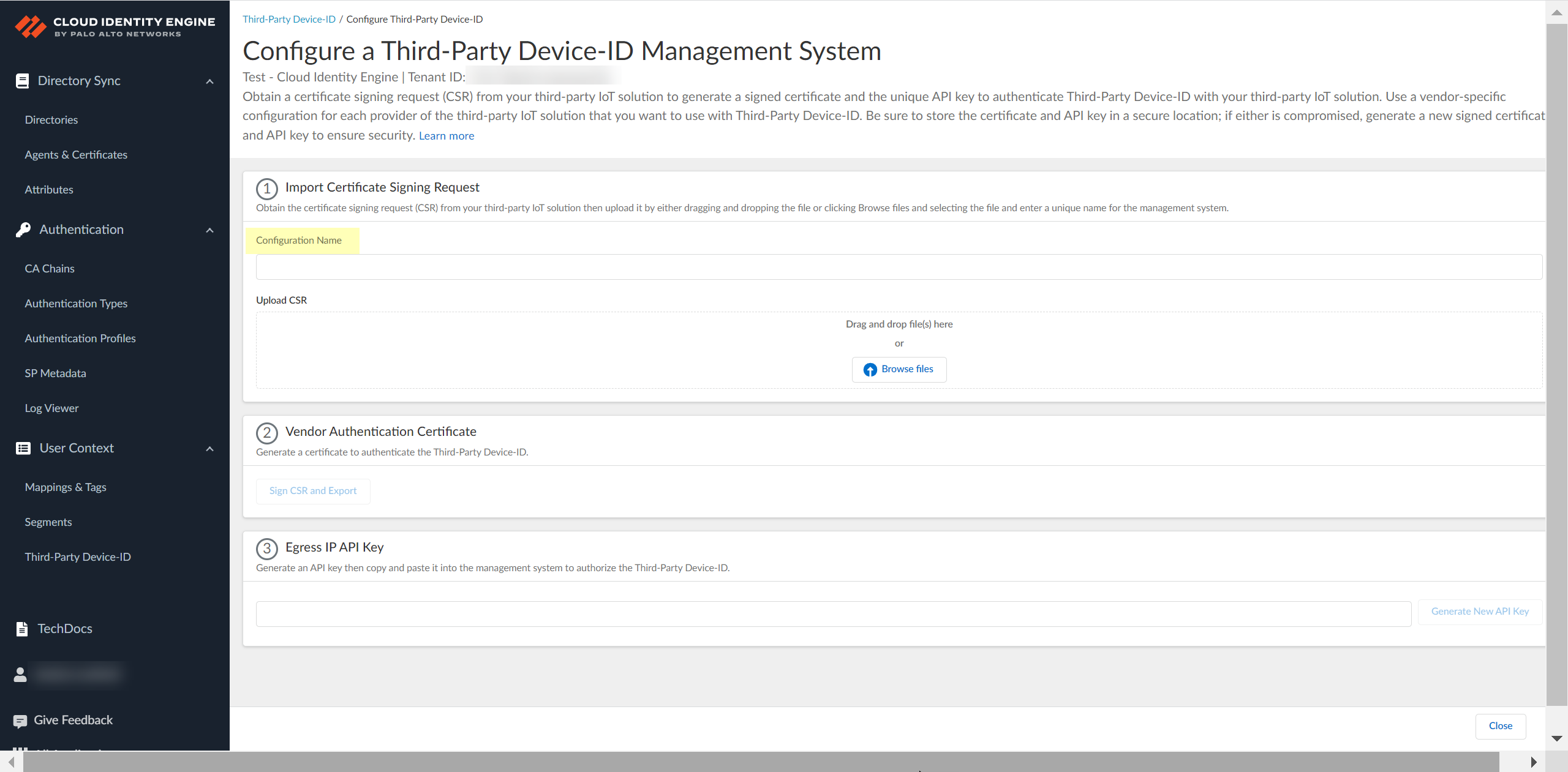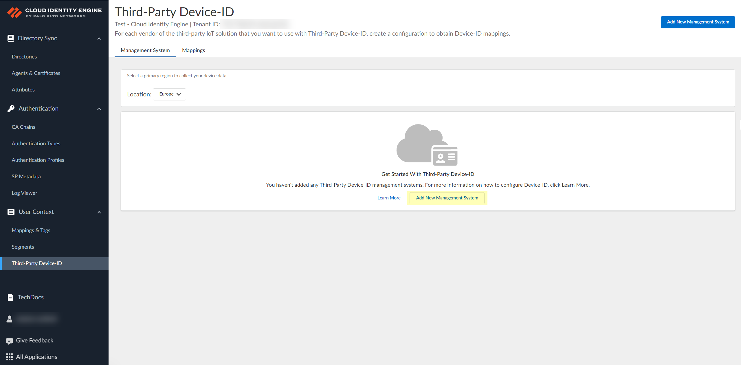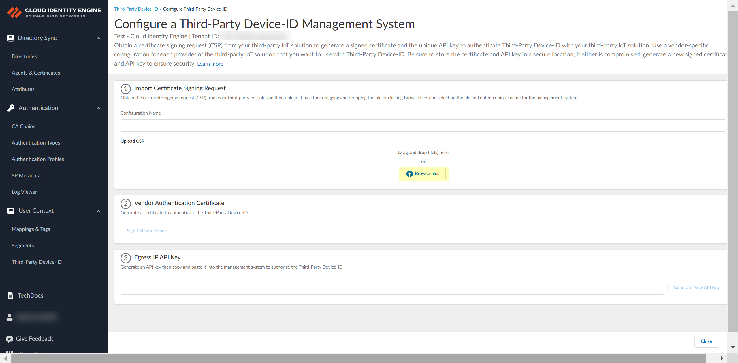 - Activate Third-Party Device-ID in the Cloud Identity Engine.If you have not already done so, configure the Cloud Identity Engine.