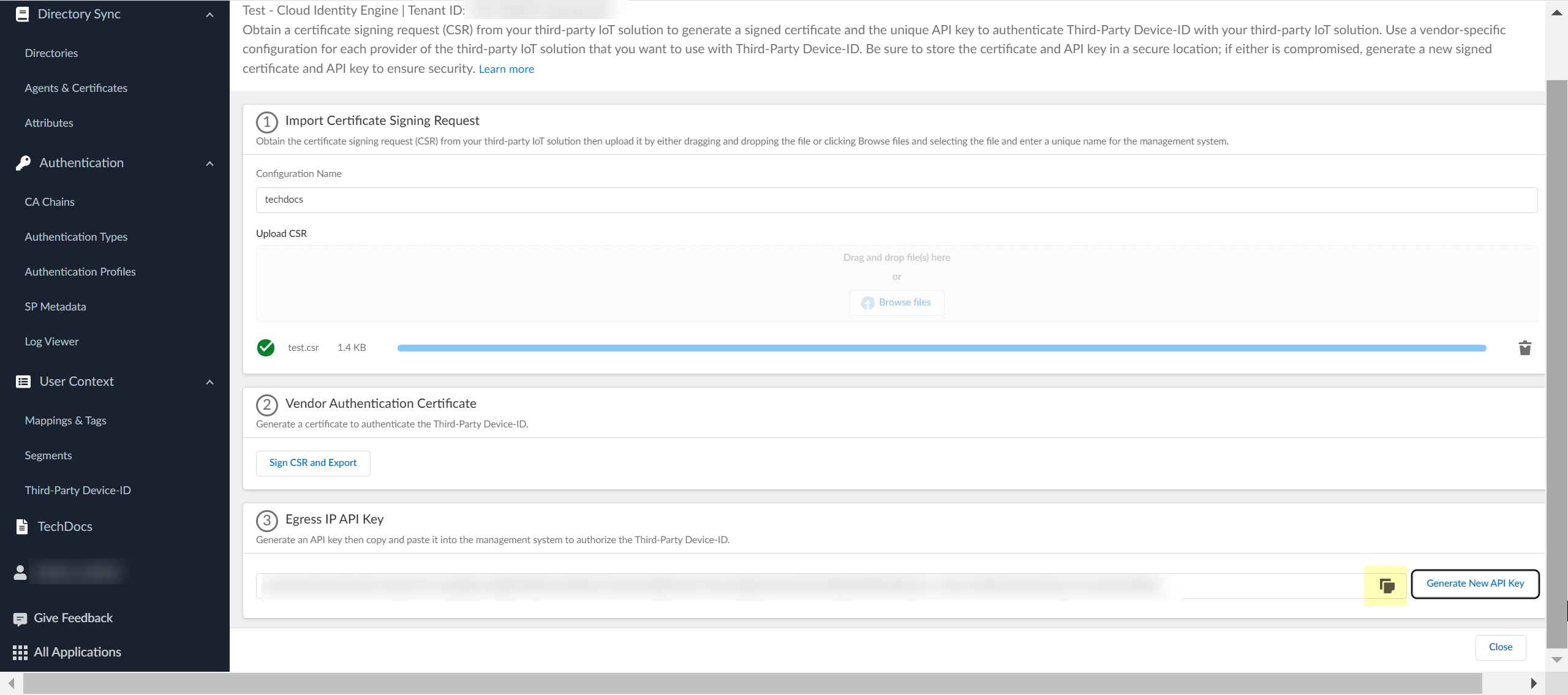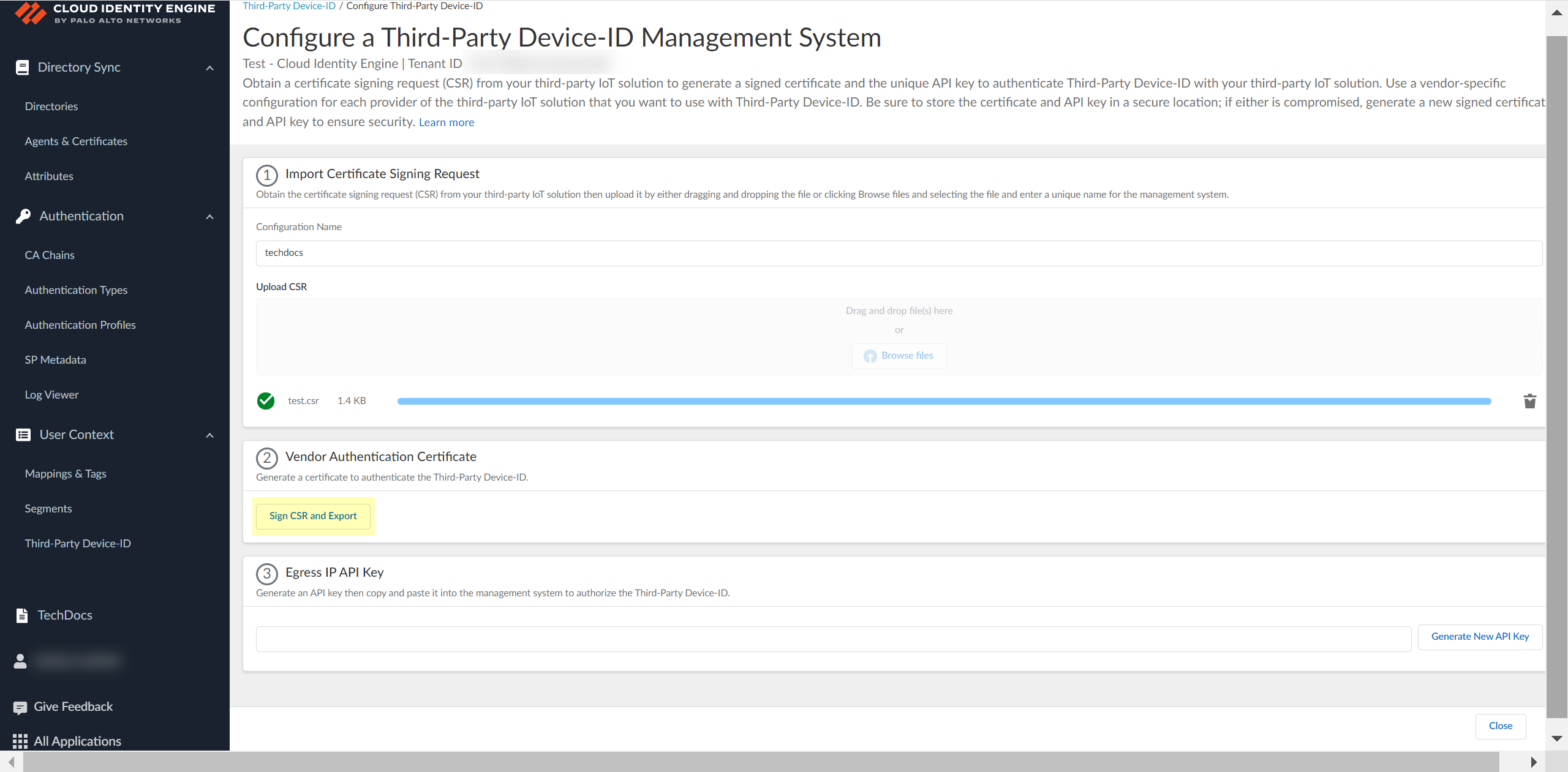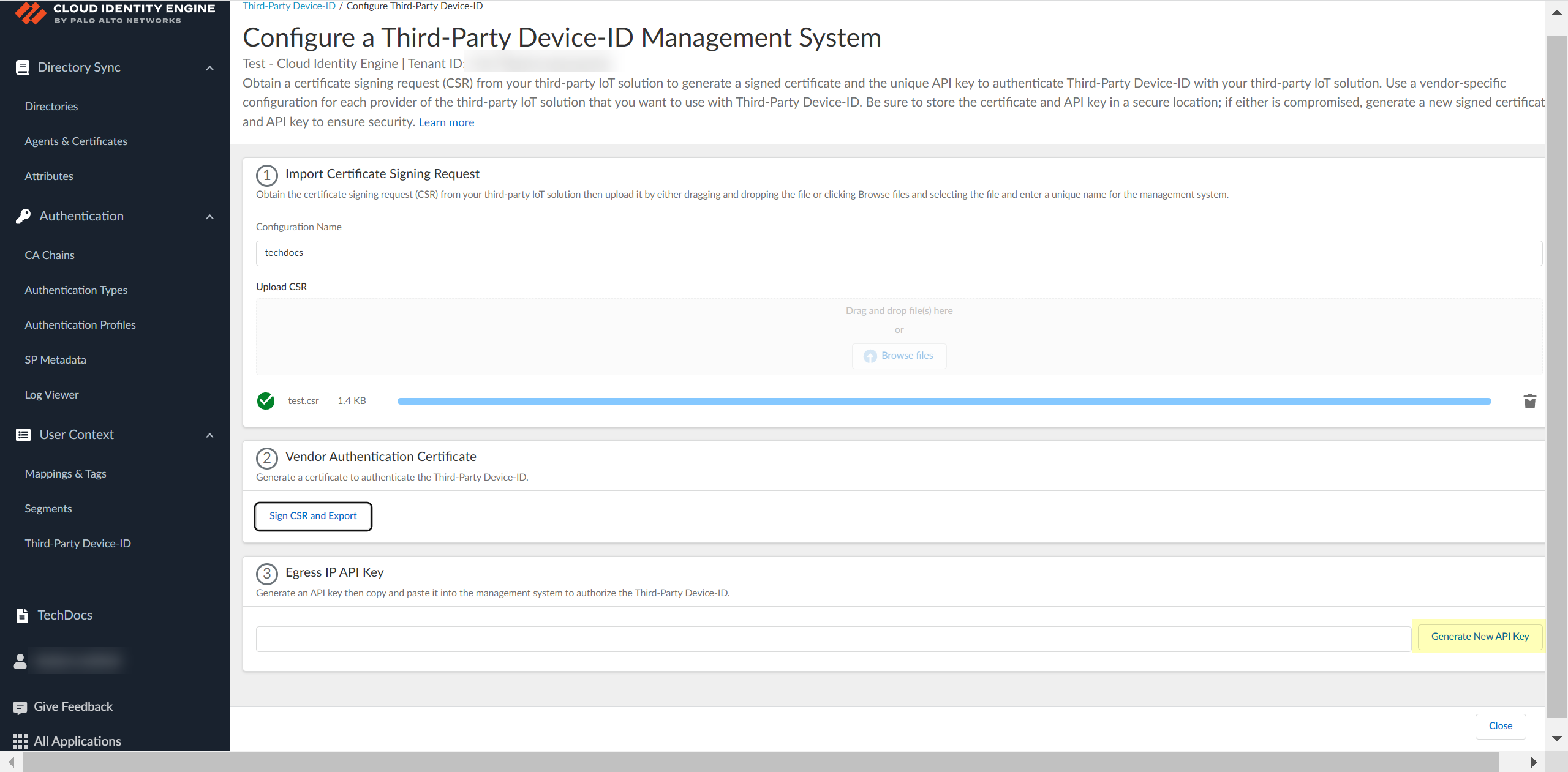 - Activate Third-Party Device-ID in the Cloud Identity Engine.If you have not already done so, configure the Cloud Identity Engine.