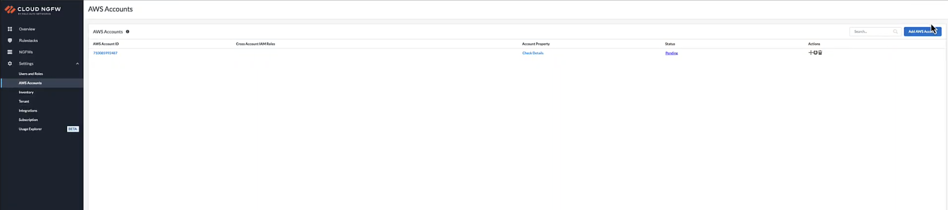 - The AWS account you are onboarding must not already be subscribed to a Cloud NGFW tenant.