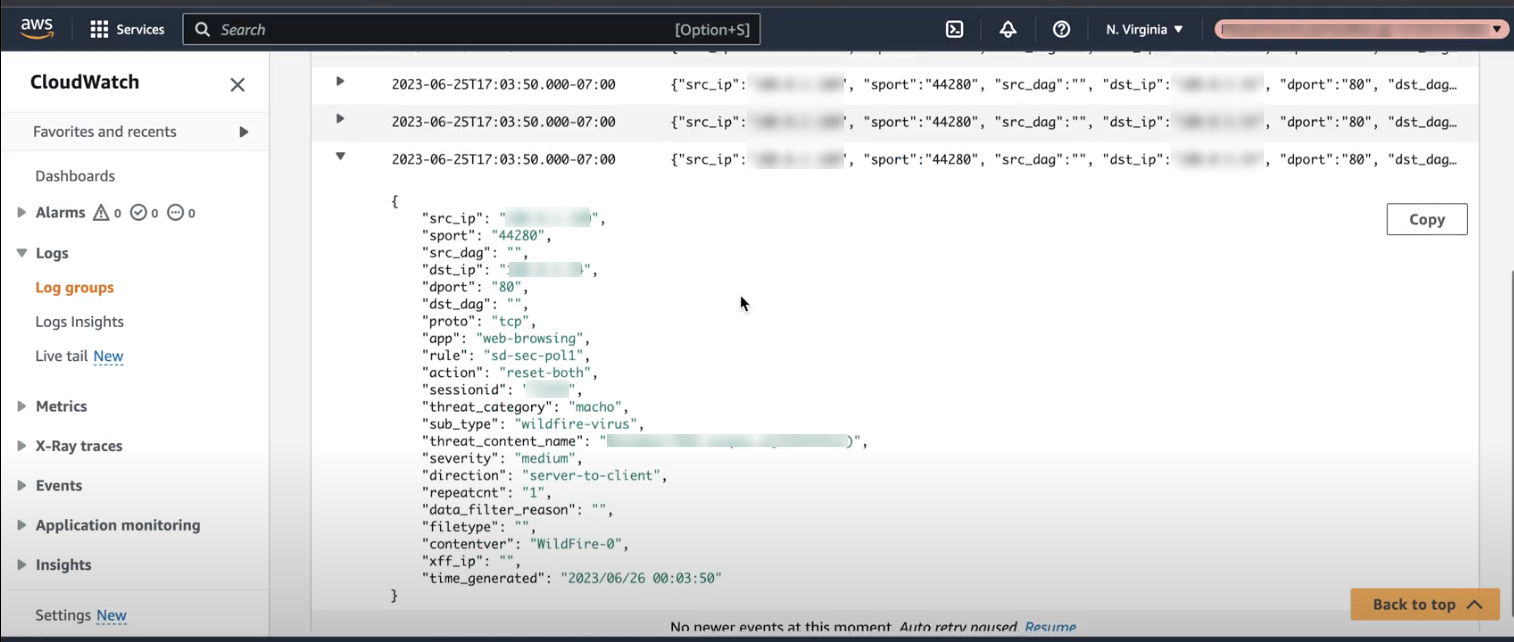 You can view WildFire submission logs in:View Logs in AWS Destinations