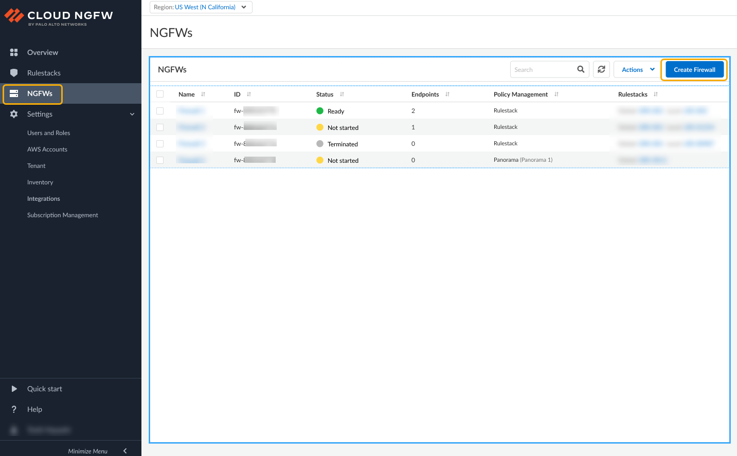 After you establish a link to Strata Cloud policy Management, you can associate a new firewall with the linked SCM tenant:- Log in to the Cloud NGFW console.Select NGFWs.Click Create Firewall.