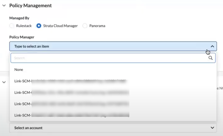 In the Add Policy Manager section, select Strata Cloud Manager for the Manage Type.